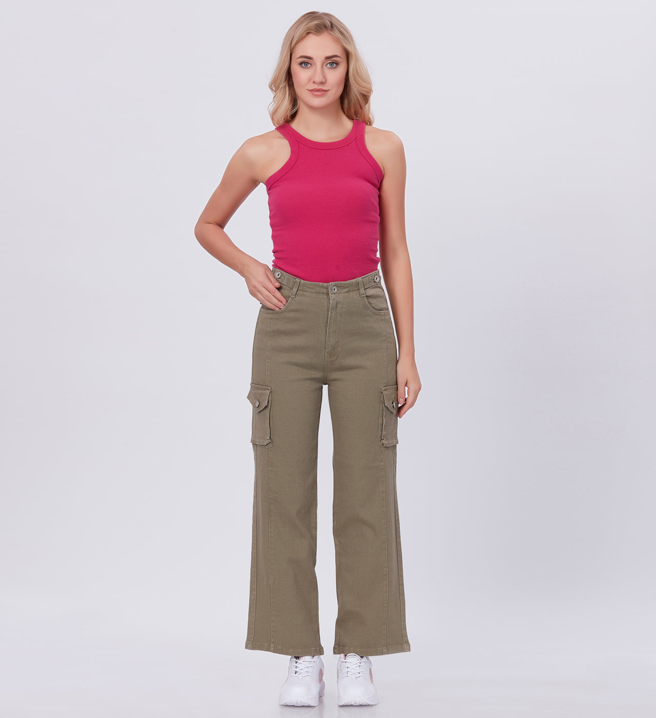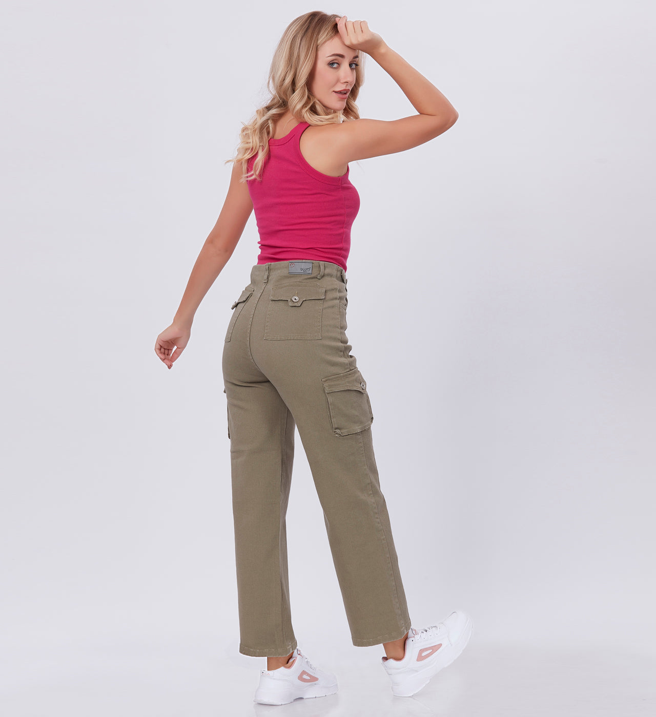 Blum Denim Women's (1831) Pista Straight Fit High-Waist Cargo: Stretchable Knitted Denim Jeans for Effortless Style